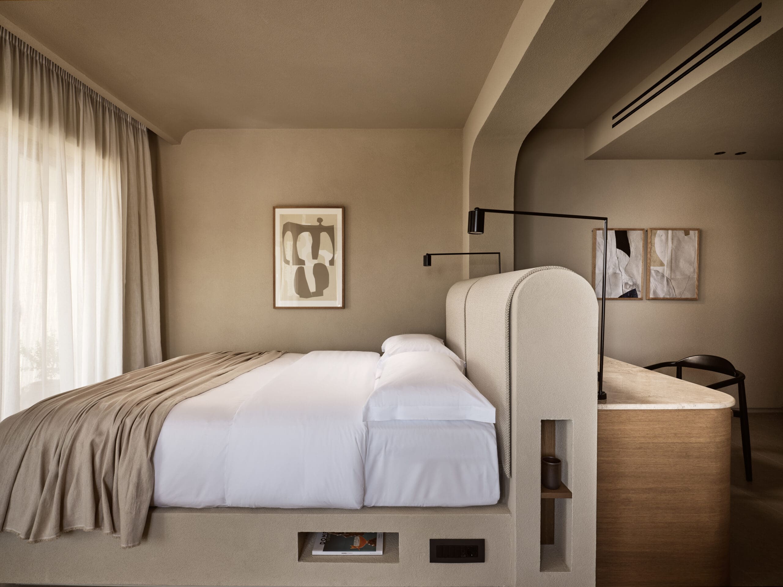 A Dialogue with the Horizon Named after the infinite blue that defines our location, the Aegean rooms are elevated stages for the sea’s daily choreography. Light, air, and the rhythmic pulse of the waves are the primary guests here.